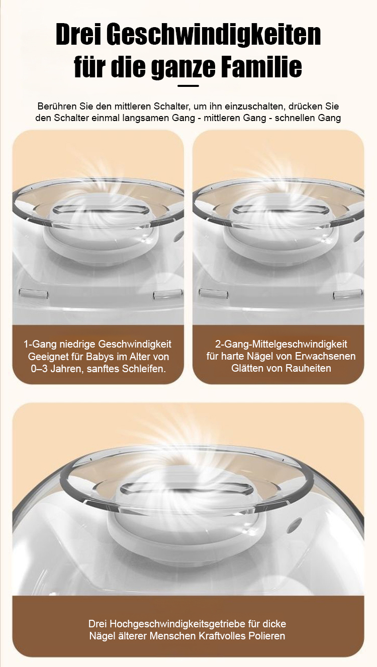 Das beliebte deutsche Nagelwerkzeug für die ganze Familie ist da 🛠️!0-3 Jahre Baby, Erwachsene, ältere Menschen – 3 Geschwindigkeitsstufen passen allen ⚙️.40-dB-Leiseraufbau 🤫, auch nachts leise für Baby-Nagelpflege!360°-Drehpolitur + helle Beleuchtung ✨, präzise ohne tote Winkel, Nägel rund und zart 🛡️.Deutsche Qualität ✅, internationale Sicherheitszertifizierungen, langlebige Legierungsschneiden 🔪.Zeitlich begrenzter Super-Angebot 🎉: UVP 117 € → 2 Stück nur 45 €, Versandkostenfrei 🚚!14-tägige Prüfphase ↩️, original Ware – kaufe bedenkenlos 😊!