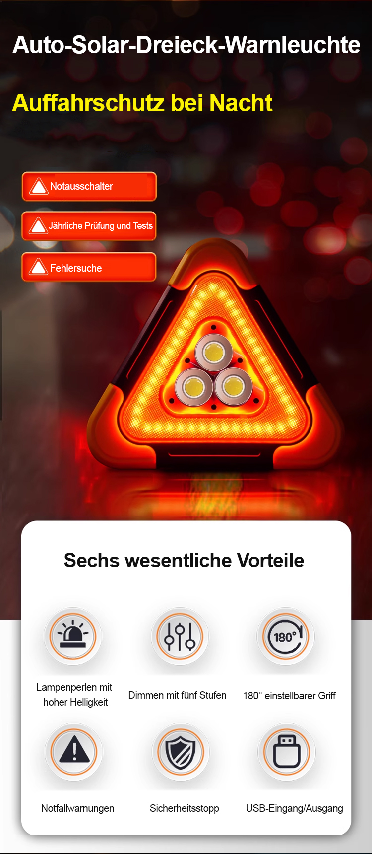 🚨Fahrzeug-Notfall-Solar-Dreieck-Warnleuchte – Tailgating-Verhinderung + vielseitige Sicherheitswarnung