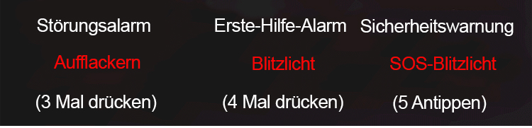⚡ 5 Warnmodi einschließlich SOS-Blitzlicht, auch bei widrigen Wetterbedingungen (Regen/Nebel) verwendbar;