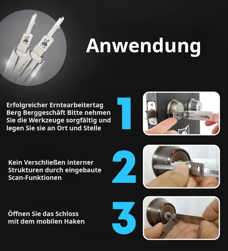 ✅Entspricht deutschen Wohnschloss-Notnormen | ohne Konstruktionsbeschädigung🚗Passend zu deutschen Automarken-Schlossnormen | konform mit Automobil-Notstandards🔧Über 1000 Tests bestanden | Schloss unbeschädigt, Werkzeug unverformt🏠💼Zum unverzichtbaren Notentsperrwerkzeug für zahlreiche deutsche Familien und Berufstätige – löst häufige Probleme wie das Nachtliche Aussperren oder der Verlust von Schlüsseln